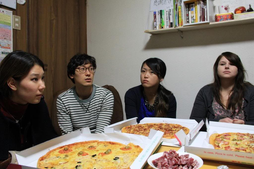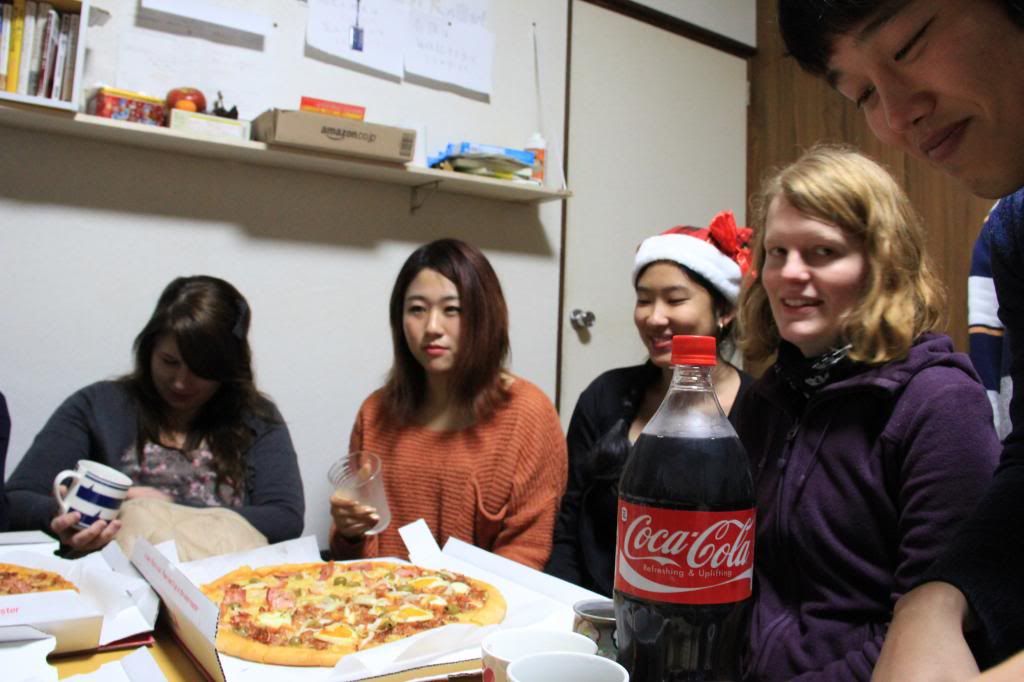 Kurz vor Weihnachten, das erste Ferienwochenende um genau zu sein, haben wir uns ein kleines Weihnachtsfest gegönnt. Es war toll =) Die Pizza, die wir selbst bestellt haben, war super lecker! Hier in Japan geht wirklich nichts über brasilianische Pizza! Haben uns natürlich auch gegenseitig beschenkt. Es waren nur Kleinigkeiten, aber das hat dem ganzen auch seinen Charme gegeben, wie ich finde =) Es war auf jeden Fall ein schöner Abend, den wir bei Thibaud im Sharehouse verbracht haben. Ich musste früh zurück ins Wohnheim, da ich am nächsten Tag früh morgens schon zum Flughafen aufbrechen musste. Cosi auf Okinawa besuchen, eine ganze Woche auf der tropischen Insel~ wie tropisch sie letztendlich war, beschreibe ich im nächsten Post.